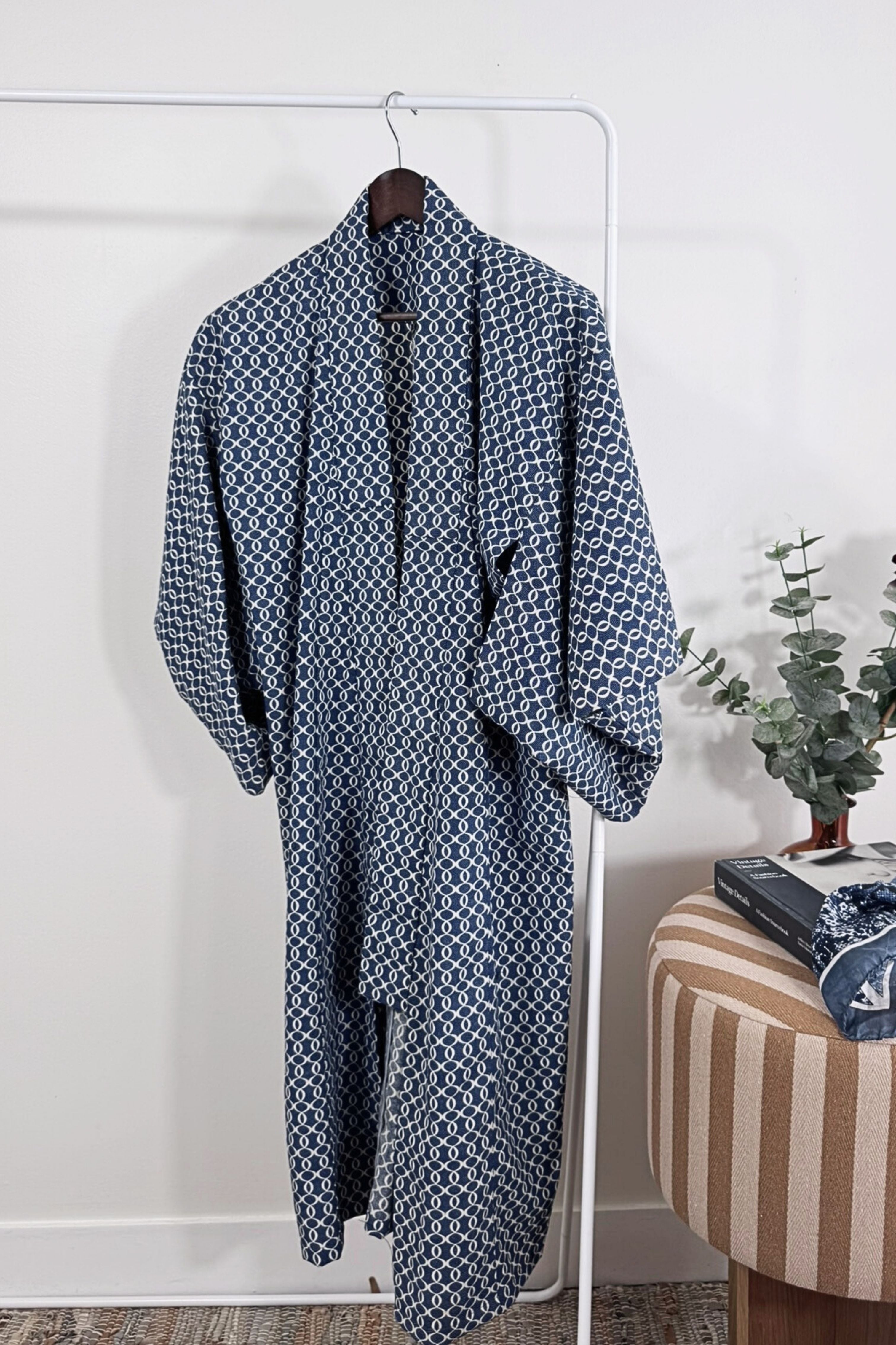 Rediscover the elegant and refined world of Japan with this artisanal cotton Kimono, a unique and rare vintage piece in perfect condition.